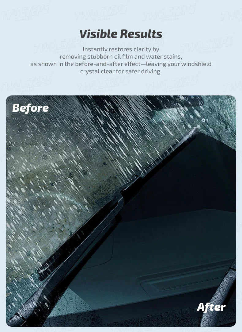 Powerful Cleaning – Deeply removes heavy oil films, dirt, and water stains from glass surfaces, restoring crystal-clear transparency.