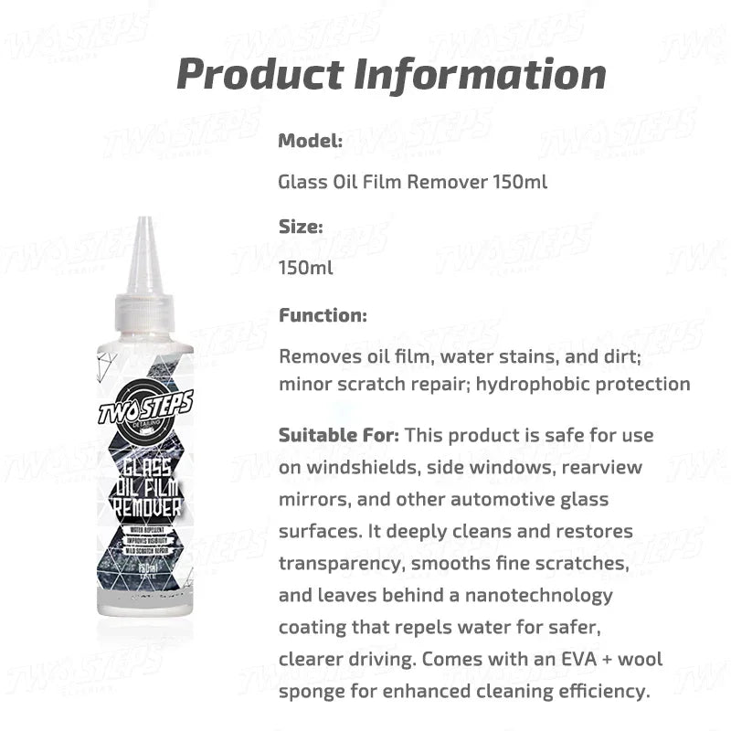 Compact & Convenient – Handy 150ml bottle, easy to store in your car or carry for regular maintenance. Comes with an EVA + wool sponge designed to boost cleaning power and reach stubborn oil film stains effectively.