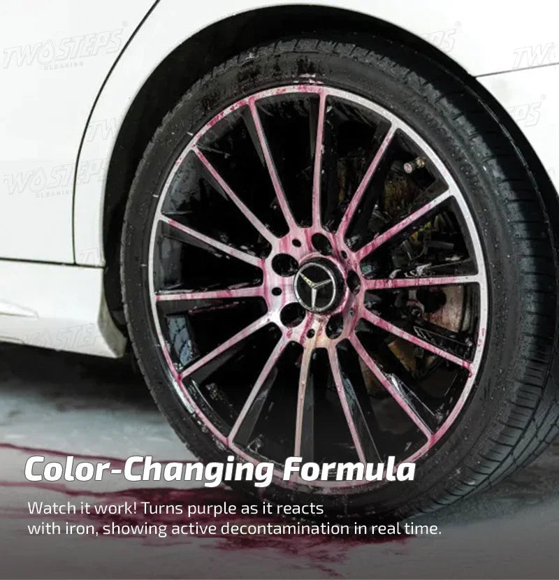 Powerful acid-free formula breaks down embedded iron particles, brake dust, and road grime on contact.